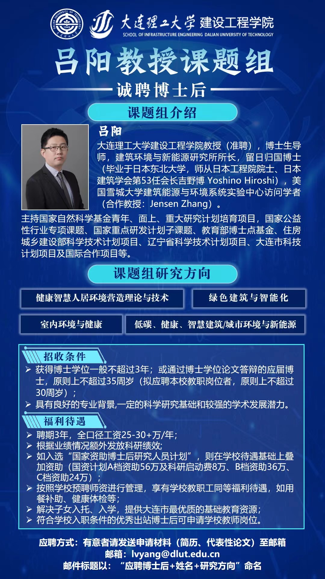 【供热、供燃气、通风及空调工程】吕阳教授课题组招聘信息